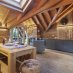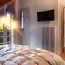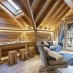 La zona giorno, ampia e luminosa, è concepita per momenti di autentico relax: un camino, una Smart TV, un divano letto matrimoniale e una iconica chaise longue affacciata sul panorama alpino. Una cornice perfetta per ritagliarsi una pausa invernale tra le vette innevate o godere del silenzio del bosco in una sera d’estate. La terrazza privata, al mattino, offre un angolo riservato per la colazione all’aria aperta, immersi nella quiete e nel verde.
