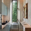 Gli spazi interni sono un capolavoro di design e artigianalità: soffitti affrescati restaurati con cura, materiali preziosi e linee contemporanee convivono in un equilibrio perfetto. La zona living, ampia e luminosa grazie alle grandi finestre che si aprono su un balcone panoramico, regala viste mozzafiato sulle vette innevate e sulle foreste circostanti, offrendo un ambiente esclusivo dove rilassarsi in assoluto comfort. Le due camere matrimoniali, finemente arredate, sono un rifugio di tranquillità e lusso: una con bagno privato e balcone, l’altra pensata per ospitare gli ospiti più esigenti con un’attenzione minuziosa ai dettagli, per risvegli rigeneranti e giornate all’insegna del benessere.