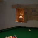 Gli spazi comuni includono un’ampia zona living con camino, una zona pranzo fino a 22 persone, una cantina con soffitto a volta, una sala biliardo, una sala TV ed una cucina completamente attrezzata.