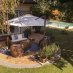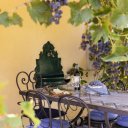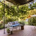 Adiacente alla villa abbiamo da un lato la zona realx arredata con divani e ombrellone, dal lato opposto il pergolato attrezzato con tavolo per 8 persone e divanetti per fare quattro chiacciere in compagnia.