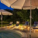 Gli spazi esterni sono ampi, un giardino ben curato circondato dal tipico nocchieto locale famoso per le sue nocciole, preziose per fare la nostra prelibata cioccolata, e imponenti castagni. Al centro abbiamo l’ampia piscina, con la zona solarium attrezzata con lettini ed ombrelloni.