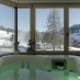Le ampie vetrate incorniciano un panorama maestoso, in cui le montagne sembrano entrare in casa, regalando un’esperienza sensoriale di rara intensità.