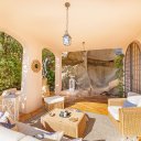 Attraversando il giardino si accede al Patio, suddiviso in 2 zone totalmente attrezzate con divani da esterni.