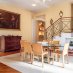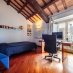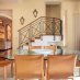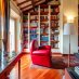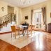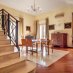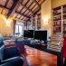 Gli spazi si sviluppano su più livelli con una logica precisa: la zona di rappresentanza al piano principale, con sale ampie, parquet caldo, inserti in marmo e un camino discreto che segna il centro della vita domestica. La cucina abitabile, collegata agli spazi di ricevimento. Lo studio soppalcato, con travi a vista e librerie, pensato per chi lavora con la stessa cura con cui vive.