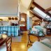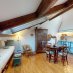 L’appartamento posto al terzo piano è caratterizzato dalle ampie finestre ad abbaino con vista sulle falesie della Valle Ponci. La zona è tranquillissima e le spiagge ed il centro storico si raggiungono in pochi minuti con percorso pianeggiante. L’ingresso è su un vano caratterizzato dalle grandi travi a vista della antica struttura del tetto. Sulla destra si apre l’accogliente soggiorno con angolo cottura; anche qui l’alto soffitto mansardato è impreziosito dalle travi a vista mentre due ampi abbaini illuminano la stanza. Lo spazio è diviso in zona soggiorno e zona pranzo con il caratteristico angolo cottura in muratura; la parte bassa del tetto ospita dei comodi ripostigli. Il bagno con antibagno è accessibile dal soggiorno. Dall'ingresso si accede alla cameretta che può ospitare due letti singoli ed è ora utilizzata come studio; da questo vano si accede ad un ulteriore ripostiglio che ospita la caldaia. Volendo è possibile realizzare una camera matrimoniale come evidenziato nella realtà virtuale che trovate più avanti nella brochure.