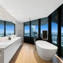 La residenza offre viste panoramiche mozzafiato sull’oceano e sullo skyline, incorniciate da spettacolari vetrate a tutta altezza che inondano gli ambienti di luce naturale e amplificano la connessione con l’esterno.