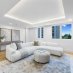 Le aree giorno si aprono senza soluzione di continuità su una grande terrazza panoramica privata, con affacci privilegiati sulla piscina e sulla baia.