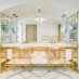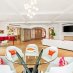 La cucina gourmet su misura è un autentico capolavoro di stile e funzionalità, con ripiani in marmo, finiture in ottone, isola centrale, elettrodomestici di fascia alta e porte scorrevoli in vetro bisellato, ideali per separare gli ambienti con eleganza.