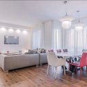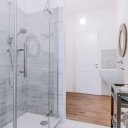 Nel dettaglio, l'appartamento risulta così distribuito: ingresso, ampia e luminosa zona giorno open con salone doppio, cucina con isola, ampio bagno finestrato e due balconi. Il disimpegno conduce alla zona notte dove sulla sinistra si trova la camera padronale con bagno in camera finestrato dotato di vasca combinata con doccia e stanza cabina armadio arredata. Sulla destra rispetto al disimpegno troviamo due ulteriori camere, una delle quali matrimoniale ed il terzo bagno finestrato con box doccia. Le condizioni interne sono ottime grazie alla recente e pregiata ristrutturazione: porta d'ingresso blindata, videocitofono, infissi in legno con vetro doppio, aria condizionata, zanzariere, pavimentazione in parquet, sistema d'allarme.