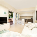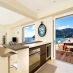 Un magnifico salone affacciato sul mare, dove la luce entra piena e naturale, in perfetta continuità con una cucina modernissima, elegante e funzionale.