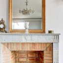La sala da pranzo, anch'essa decorata con un camino in marmo, offre uno spazio caldo.