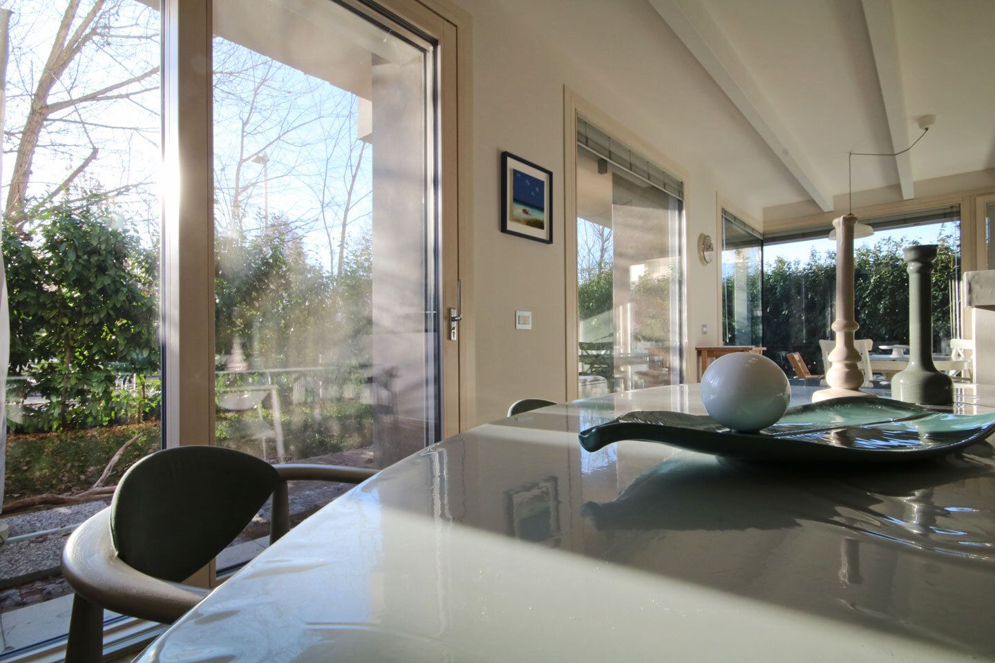 Gli interni si distinguono per spazi ampi, luminosi e accoglienti, progettati per adattarsi alle esigenze della vita familiare. Le grandi vetrate scorrevoli permettono alla luce naturale di accompagnare ogni momento della giornata e creano una continuità armoniosa con l’esterno, rendendo la casa sempre ariosa e piacevole da vivere.