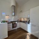 Direttamente dal giardino privato, salendo al piano rialzato tramite elegante scala esterna, l’ingresso conduce a un ampio soggiorno arioso e luminoso con cucina a vista moderna e funzionale, bagno e disimpegno con comoda armadiatura a muro.