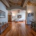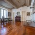 Il parquet caldo e luminoso accompagna lo sguardo verso i magnifici soffitti affrescati, creando un affascinante dialogo tra arte e architettura. Le ampie altezze conferiscono respiro e solennità agli spazi, mentre i corridoi arricchiti da armadi su misura scandiscono il percorso interno con equilibrio ed eleganza.