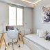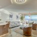 Il soggiorno di 38 m² con cucina a vista gode di un’ottima luminosità e di finiture curate, valorizzate da linee architettoniche eleganti. La terrazza offre una splendida vista panoramica sul mare.