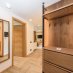 Contraddistingue questa casa unica l’uso di materiali alpini importanti come i legni naturali (noce, rovere..) mixati magistralmente con materiali piu’ moderni come le resine caratterizzate da linee pure e leggere: si ottiene quindi un linguaggio estetico che dialoga perfettamente sia con la piu’ contemporanea e internazionale progettazione sia con lo spirito della montagna che ricopre sempre un ruolo centrale.