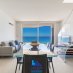 ampia zona living con grandi vetrate che incorniciano il panorama, regalando un’esperienza di luce e spazio unica. La cucina, elegante e contemporanea, si integra perfettamente con l’area pranzo e il salotto, creando un ambiente conviviale e raffinato. La zona notte dispone di due camere da letto matrimoniali, lavanderia, due bagni e terrazzo retrostante.