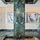 Lampade artigianali in vetro veneziano, arredi europei bespoke e una collezione d’arte accuratamente selezionata completano ambienti di rara eleganza.