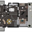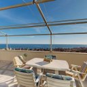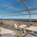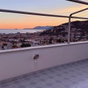 L’attico occupa l’intero ultimo piano della villa e gode di una completa vista mare frontale che si apprezza da ogni ambiente della casa. Gli spazi, ampi e ben distribuiti, si sviluppano su una superficie interna di circa 130 mq e comprendono un ingresso, una cucina, una sala da pranzo, un luminoso soggiorno affacciato sul mare, uno studio, due camere da letto e due bagni, oltre a numerosi armadi a muro che rendono gli ambienti funzionali e ordinati. La zona giorno si apre verso l’esterno su un magnifico terrazzo fronte mare di circa 40 mq ideale per pranzi all’aperto, momenti di relax o semplicemente per godere della splendida vista. A completare gli spazi esterni dell’abitazione vi sono inoltre due balconi panoramici uno a servizio della camera matrimoniale e l’altro a servizio della cucina ed anch’essi regalano suggestivi scorci di vista mare.