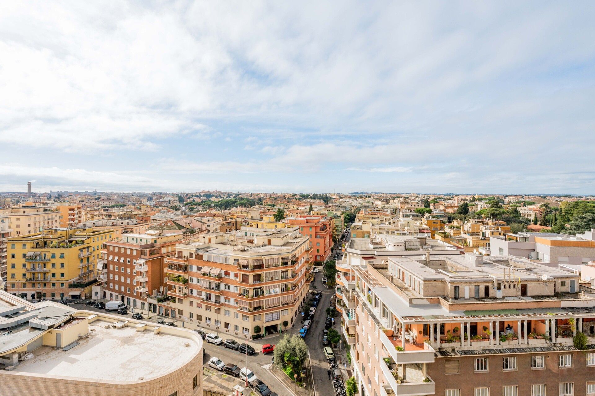 Il vero cuore pulsante della casa è la sua straordinaria terrazza panoramica di 30 mq. Qui, l’orizzonte si apre in un abbraccio mozzafiato che spazia dai tetti della Capitale fino ai profili dei Castelli Romani. Immaginate il privilegio di un aperitivo al tramonto, con il cielo che si tinge di arancio, o di una cena sotto le stelle in totale privacy: uno spazio che trasforma ogni momento in un ricordo indelebile.