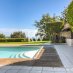 Dispone di una grande piscina (13x6 m) con nuoto controcorrente, una pool house con cucina estiva, un giardino, un orto e ampi spazi per riporre gli oggetti.