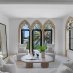Il cuore della casa è la spettacolare Great Hall, caratterizzata da soffitti a volta alti oltre 9 metri, camini monumentali in pietra, vetrate antiche originali e lampadari francesi in bronzo fuso, che creano un’atmosfera scenografica e solenne. I pavimenti in pietra di Gerusalemme aggiungono profondità storica ed eleganza materica a ogni ambiente.