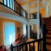 L’ingresso principale accoglie con colonne e soffitti a volte, impreziosito da un importante scalone centrale che collega i vari piani e conduce alle eleganti balconate interne.