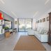 Ampia zona giorno open-space con vetrate scorrevoli a tutta altezza che uniscono interno ed esterno in un flusso armonioso
