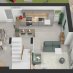 Dall’ingresso si accede nella zona giorno costituita da un ampio soggiorno con zona cucina-pranzo; volendo è possibile realizzare un secondo bagno.