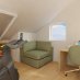 Dal pianerottolo la scala prosegue al piano mansarda dove si trovano due vani dotati di finestre e velux che possono essere utilizzati a piacimento come stanze da letto o studio; in uno dei vani è possibile realizzare un bagno. Dal corridoio si accede al bel terrazzino a vasca con vista mare. Sul terrazzo si affaccia un vano tecnico che ospita la caldaia a metano utile anche come comodo ripostiglio.