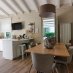 La villa dispone inoltre di un primo piano indipendente, un appartamento a sé tutto con tetto a vista, con zona giorno, angolo cottura, una camera matrimoniale, una camera con tre posti letto e un bagno. Questa zona si è rivelata perfetta per i nonni, che hanno potuto godere della propria privacy pur restando vicini.