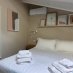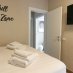 L’interno è semplicemente impeccabile. Arredato con gusto moderno, minimale e chic, tutto nei toni eleganti del bianco e panna, trasmette freschezza e raffinatezza. Al piano terra ci accoglie una grande cucina abitabile, luminosissima, con doppio accesso al patio e alla piscina: perfetta per cucinare insieme e poi mangiare all’aperto. Il soggiorno, ampio e pavimentato in chiaro, è il cuore della casa, dove abbiamo condiviso giochi, risate e momenti di vero relax. Le quattro camere matrimoniali, tutte con bagno privato, offrono il massimo del comfort, ideali anche per ospitare amici o familiari.