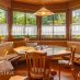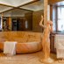 Il piano terra è pensato come un susseguirsi di spazi dedicati alla convivialità e alla condivisione: il grande salone d’ingresso con stube, la raffinata sala da pranzo e il caratteristico larin, autentico cuore della casa. Tutti gli ambienti sono avvolti da un’atmosfera calda e accogliente, esaltata dal gioco della luce e dai toni naturali dei materiali.