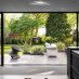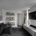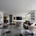 Porte scorrevoli in alluminio a tutta altezza, tende elettriche telecomandate, TV a incasso, caminetto a gas Italkero Venezia a doppia facciata in vetro e un ufficio sono tutte caratteristiche di questa stanza.