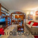 Al piano terra l’ingresso avviene attraverso un’ampia veranda coperta, perfetta per vivere gli spazi esterni in ogni stagione, che conduce a un elegante soggiorno e a una cucina abitabile separata. La zona notte comprende una camera matrimoniale e due camere doppie, oltre a un bagno finestrato con vasca. Il piano superiore offre un’ulteriore veranda coperta con piacevole scorcio sul mare, ideale come area relax. Internamente troviamo un luminoso living con camino, una camera matrimoniale, una camera doppia e un bagno finestrato con doccia.