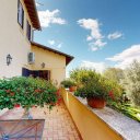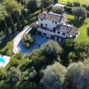 Il giardino, di circa 3.000 mq, è curato con gusto e arricchito da piante ornamentali, olivi secolari e un piccolo frutteto; il terreno totale misura 3.700 mq. Una splendida piscina completa la proprietà, regalando all’insieme un’atmosfera di raffinata serenità.