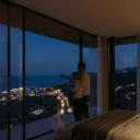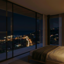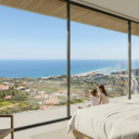 Le master suite sono santuari privati. La texture della pietra a vista, illuminata da fasci di luce radente, crea un contrasto sofisticato con il calore del legno. Svegliarsi con il profilo delle Eolie all'orizzonte e le luci del litorale che disegnano la costa è un lusso sensoriale senza tempo.