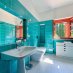 The spacious living room with a fireplace opens onto a south-facing covered patio, the perfect place to relax in the sea breeze on hot summer days. The separate, fully equipped kitchen has direct access to the garden’s BBQ and oven area—perfect for unforgettable summer dinners. The large dining room is designed for joyful gatherings, whilesix generously sized bedroomswith sea views offer comfort for even the largest family.
