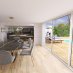 L’abitazione si sviluppa su due livelli: al piano terrauna luminosa zona giorno, bagno e un ampio giardino privato con piscina.