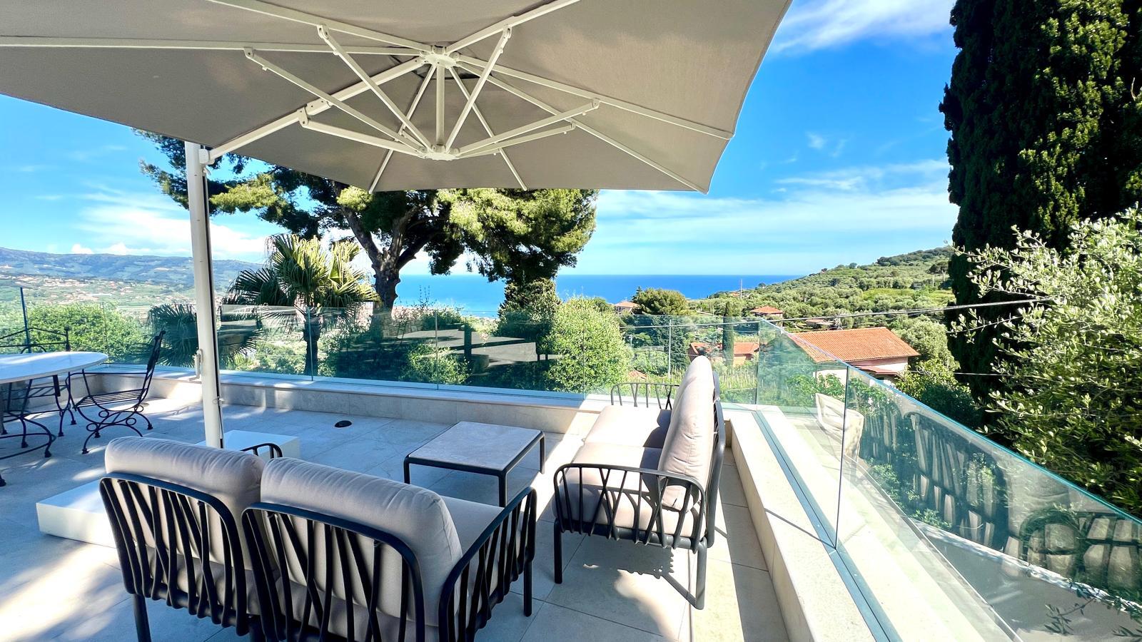 Si trova in una posizione riservata ma comoda, immersa nel verde e con una vista che spazia dalla collina fino al blu del Mediterraneo. È una villa unifamiliare su un unico livello, di circa 134 mq, che è stata ristrutturata pochi anni fa con grande attenzione ai dettagli e con materiali di alta qualità.