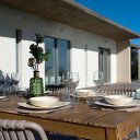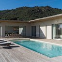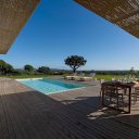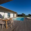 La villa è dotata di materiali di alta qualità, tra cui finiture Porcellanosa in tutte le stanze. La terrazza, realizzata in ape lapacio, e le coperture in bambù con aria passante garantiscono eleganza e freschezza.