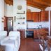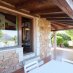 L’ingresso conduce a un ampio open space dove la luce naturale filtra generosa attraverso le grandi vetrate che incorniciano la vista sul mare. I pavimenti in cotto e le travi a vista in castagno scuro contribuiscono a creare un ambiente caldo, accogliente e coerente con la tradizione architettonica gallurese. Gli spazi sono ben organizzati: una zona living confortevole, un’area pranzo e una cucina funzionale, ideale per la vita quotidiana e per accogliere ospiti.