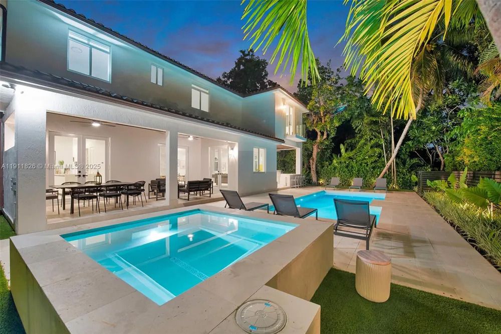 Nel cuore esclusivo di Coral Gables, questa splendida residenza con accesso controllato rappresenta una perfetta fusione tra charme mediterraneo e comfort contemporaneo, offrendo un rifugio privato immerso nel verde.