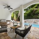 Un rifugio recintato di ispirazione mediterranea a South Coconut Grove, questa residenza su due piani fonde un design elegante con una perfetta integrazione tra interni ed esterni. Una spettacolare scala centrale conduce al piano principale open space, che comprende un soggiorno con soffitto a volta, una sala da pranzo formale e una cucina da chef con accesso a terrazze private esterne. Il rigoglioso giardino sul retro offre una piscina con fontane, una spa, una cucina estiva e un patio coperto. Al piano superiore, l'ampia suite principale vanta due cabine armadio, una vasca idromassaggio e una grande terrazza privata. Mobili di design, soffitti voluminosi e un'ampia zona giorno al secondo piano completano questo paradiso senza tempo di Grove.