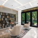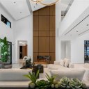 con soffitti alti 7,6 metri, un elegante camino, una sala da pranzo formale con cantina, una sala familiare e una cucina gourmet.