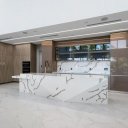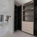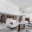 L’ingresso scenografico, impreziosito da una porta a bilico e da un imponente atrio a tutta altezza, introduce spazi living raffinati con soffitti elevati e finiture moderne di altissima qualità. La cucina, realizzata su misura e dotata di elettrodomestici Wolf e Sub-Zero, rappresenta il cuore della casa: un ambiente sofisticato pensato tanto per la quotidianità quanto per ricevere ospiti in grande stile.