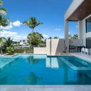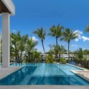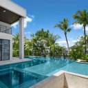 Gli spazi esterni, progettati per essere vissuti in ogni stagione, offrono un’autentica oasi privata con piscina riscaldata, cucina estiva completamente attrezzata e lounge coperte immerse in una rigogliosa vegetazione tropicale.