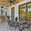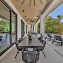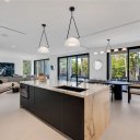 Il cuore della casa è una cucina da chef dal design contemporaneo, dotata di elettrodomestici Fisher & Paykel, una scenografica isola centrale e una spaziosa dispensa. Gli ambienti living, ampi e luminosi, si aprono completamente verso l’esterno attraverso una parete vetrata a tutta larghezza, creando una connessione fluida con la terrazza coperta, attrezzata con cucina outdoor, zona pranzo e lounge.