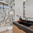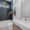 Tra le caratteristiche tecniche e costruttive: posizione sopra la linea di alluvione FEMA, porte interne a tutta altezza (2,4 m) senza cornice, pareti sospese, garage con lift, ripostiglio climatizzato, bagno di servizio e bagno completo dedicato alla zona piscina.