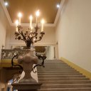Al piano superiore, il salone, destinato agli eventi più importanti, si fonde con stanze da letto e una cappella privata dedicata all’Immacolata, che affascina con la sua spiritualità. Qui, i soffisti a volta e i decori ricercati raccontano l’intensità di un’epoca in cui l’arte e la fede si incontravano.